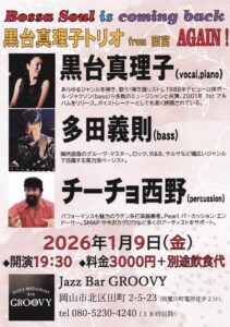 ・(黒台真理子 vocal, piano 多田義則bass チーチョ西野percussions)